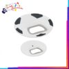 Alcancía de plástico en forma de balón de fútbol soccer. Cuenta con tapa giratoria en la parte inferior para poder abrir.