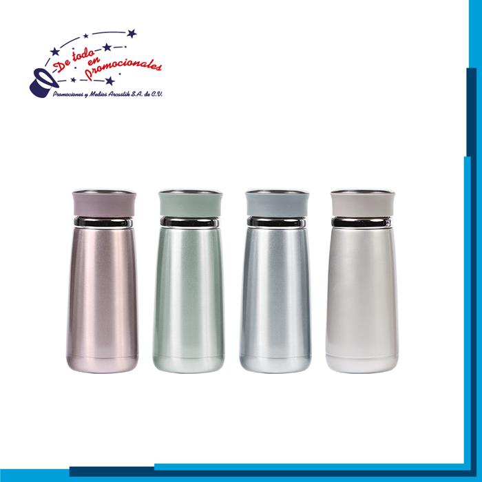 Vaso térmico de acero inoxidable con doble pared y popote metálico. Capacidad 260 ml.