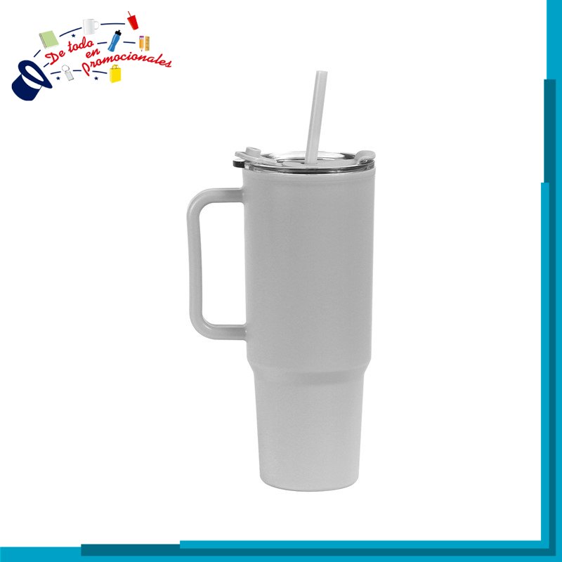 Termo de color sólido fabricado en polipropileno de doble pared. Incluye una tapa a presión de plástico AS con silicón para una mejor hermeticidad. Incluye popote de polipropileno. Capacidad de 1,100 ml. / 37 OZ.