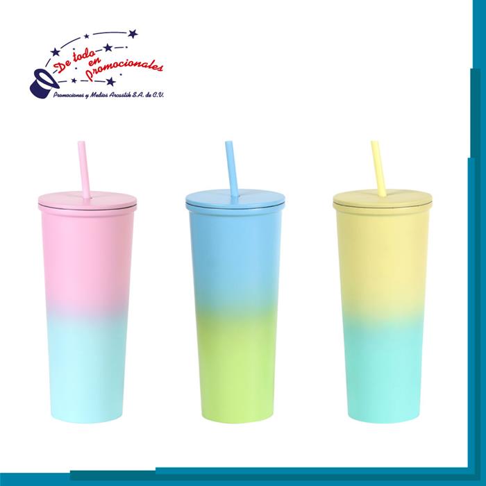Vaso de acero inoxidable doble pared con tapa y popote de plástico, fabricado en materiales de grado alimenticio, mantiene bebidas frías o calientes por un largo tiempo. No usar en microondas e Incluye una caja de cartón individual. Capacidad 600 ml.