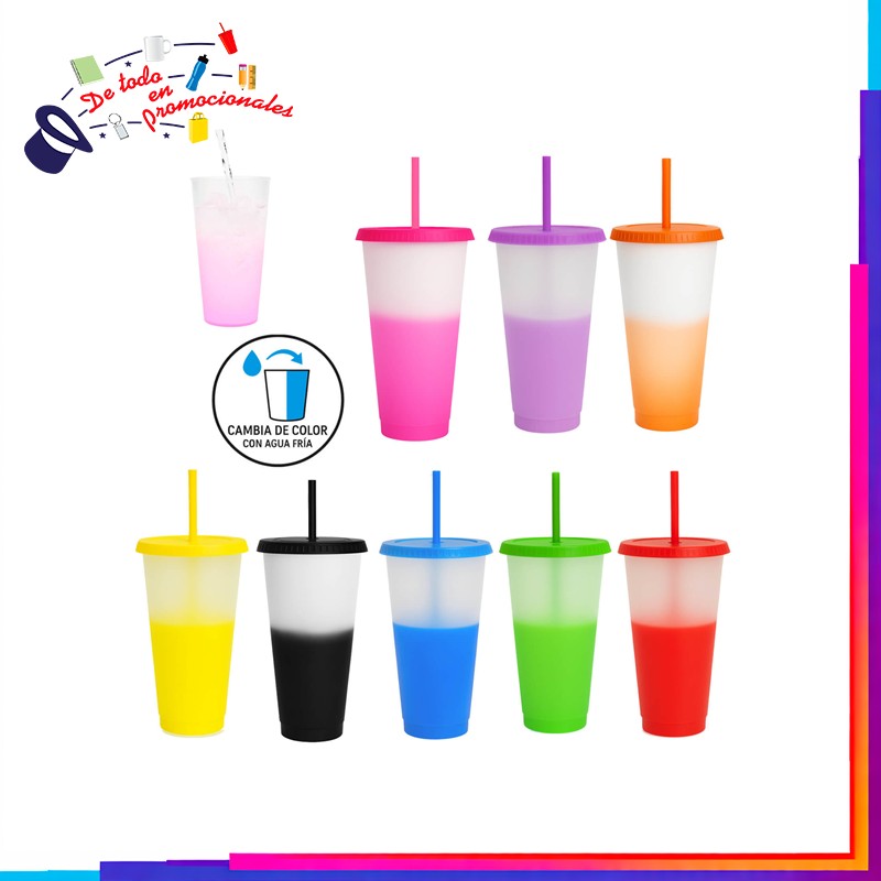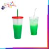 Vaso de plástico con acabado frost degradado y tapa solida. (Incluye popote).