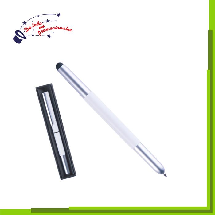 Bolígrafo metálico con sistema de apertura retráctil en la parte superior; touch para dispositivos con pantallas táctiles y pequeñas hendiduras para sujeción, un pequeño detalle que lo hace lucir.