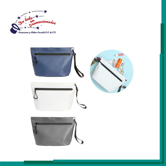 Estuchera fabricada en poliéster reciclado y curpiel. Con cierre color dorado.