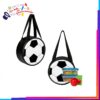 Set de BBQ en estuche con diseño de cancha de fútbol que también funciona como mandil. Incluye guante, pinzas, tenedor asador y volteador.