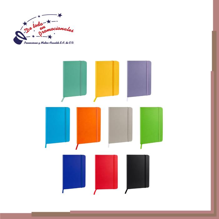 Libreta con 80 hojas de raya. Incluye separador de hojas y elástico para cerrar.