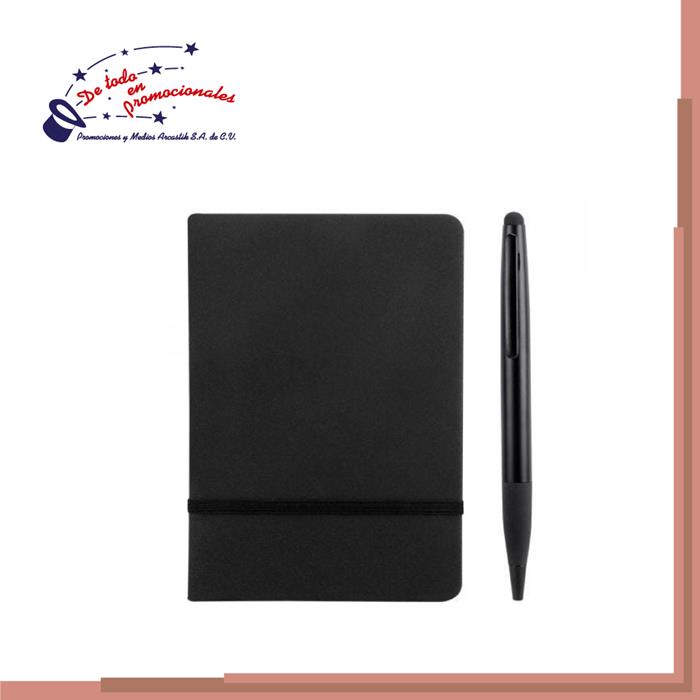 Libreta con 80 hojas a raya. Cubierta rígida con dos tipos de textura: una de diseño termograbado y otra lisa. Incluye elástico para bolígrafo y separador de hojas. Bolígrafo no incluido.