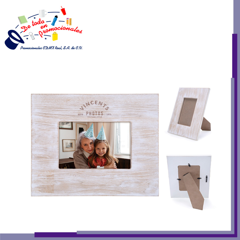Portarretratos de madera glaseada con ventana de vidrio, ideal para fotografías de 10 x 15 cm. Cuenta con soporte de MDF, perillas de seguridad y sujetador para colgarse. Se puede acomodar de forma horizontal o vertical. Presentación: caja blanca.