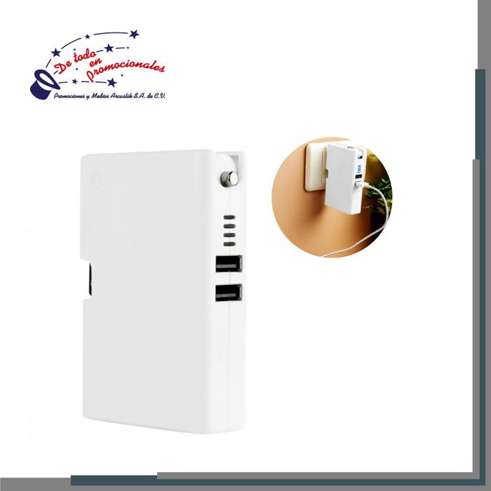 Batería auxiliar para smartphone, capacidad 10,000 mAh. Cuenta con 2 salidas USB, linterna de 1 LED y display para mostrar el nivel de batería. Incluye estuche, cable cargador compatible con USB y micro USB.