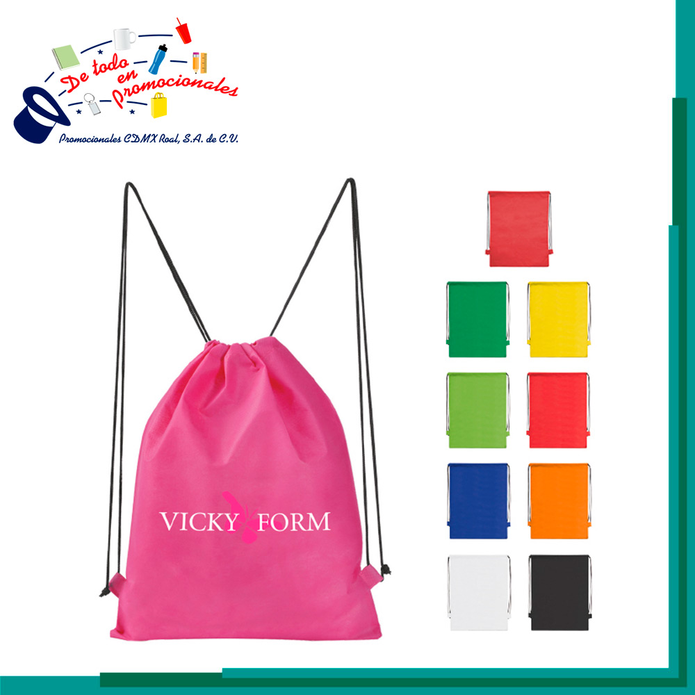 Morral con jaretas y cordón negro. Peso máximo de carga de 10 kgs.