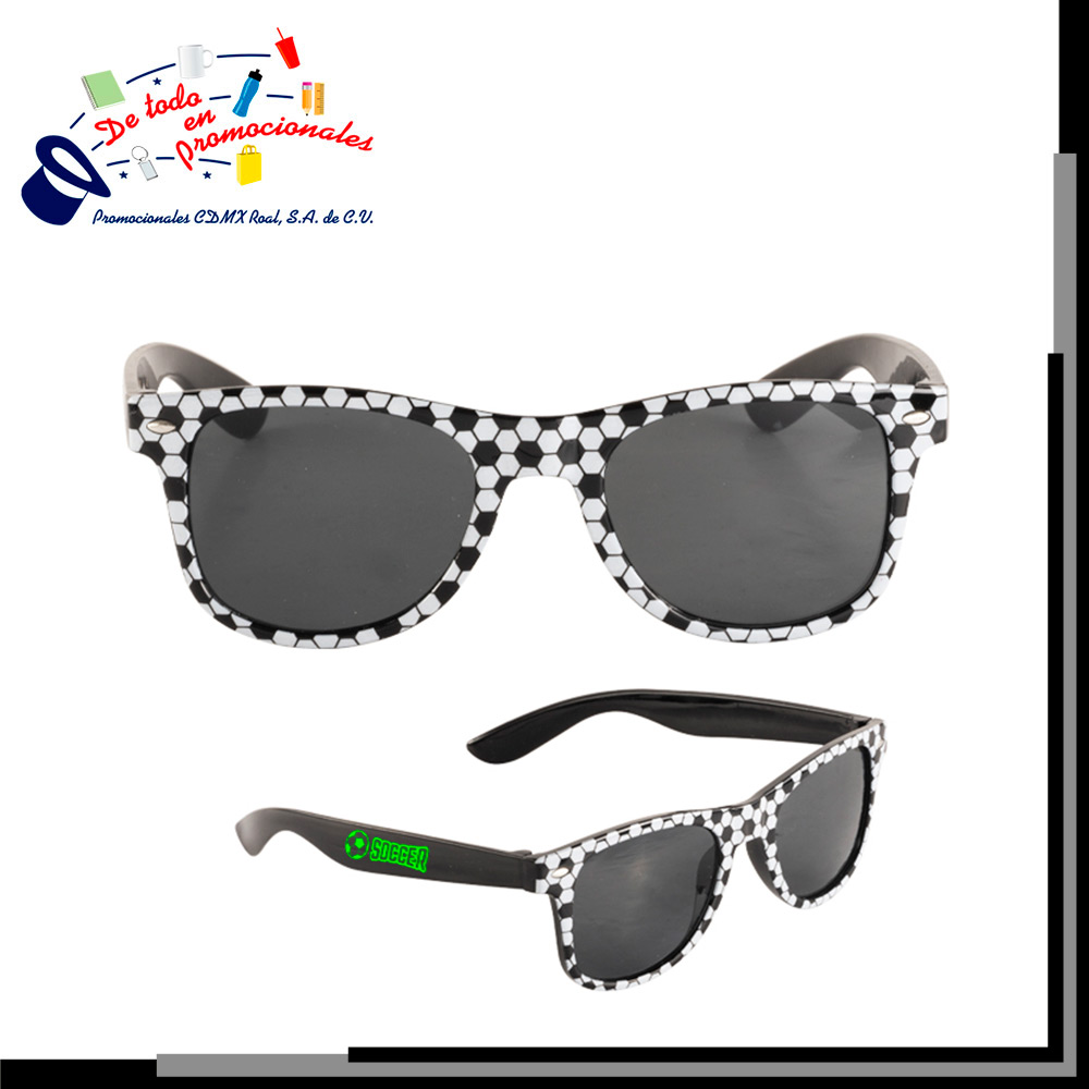 Lentes de sol con diseño de balón de futbol soccer y mica de protección solar UV400.